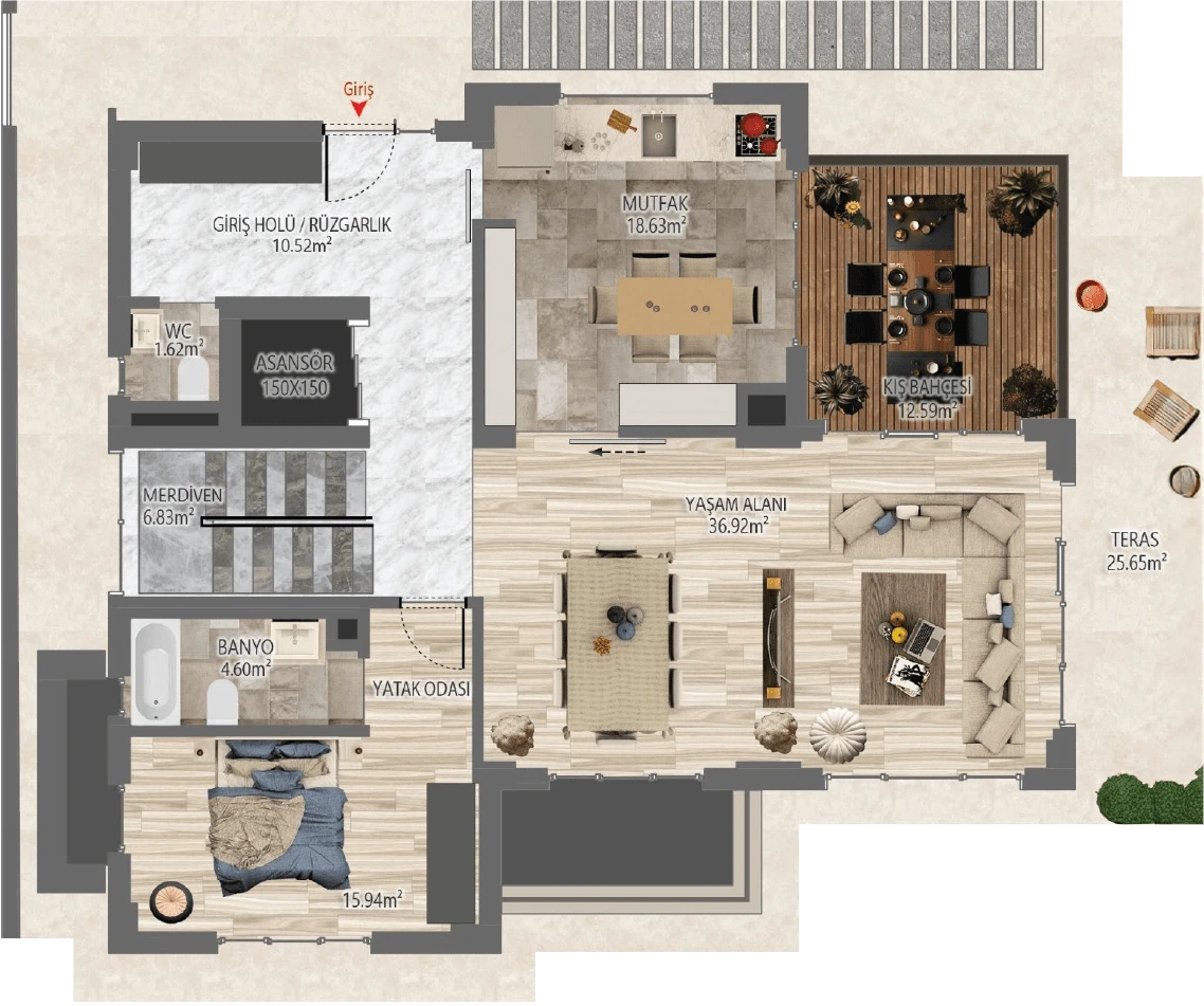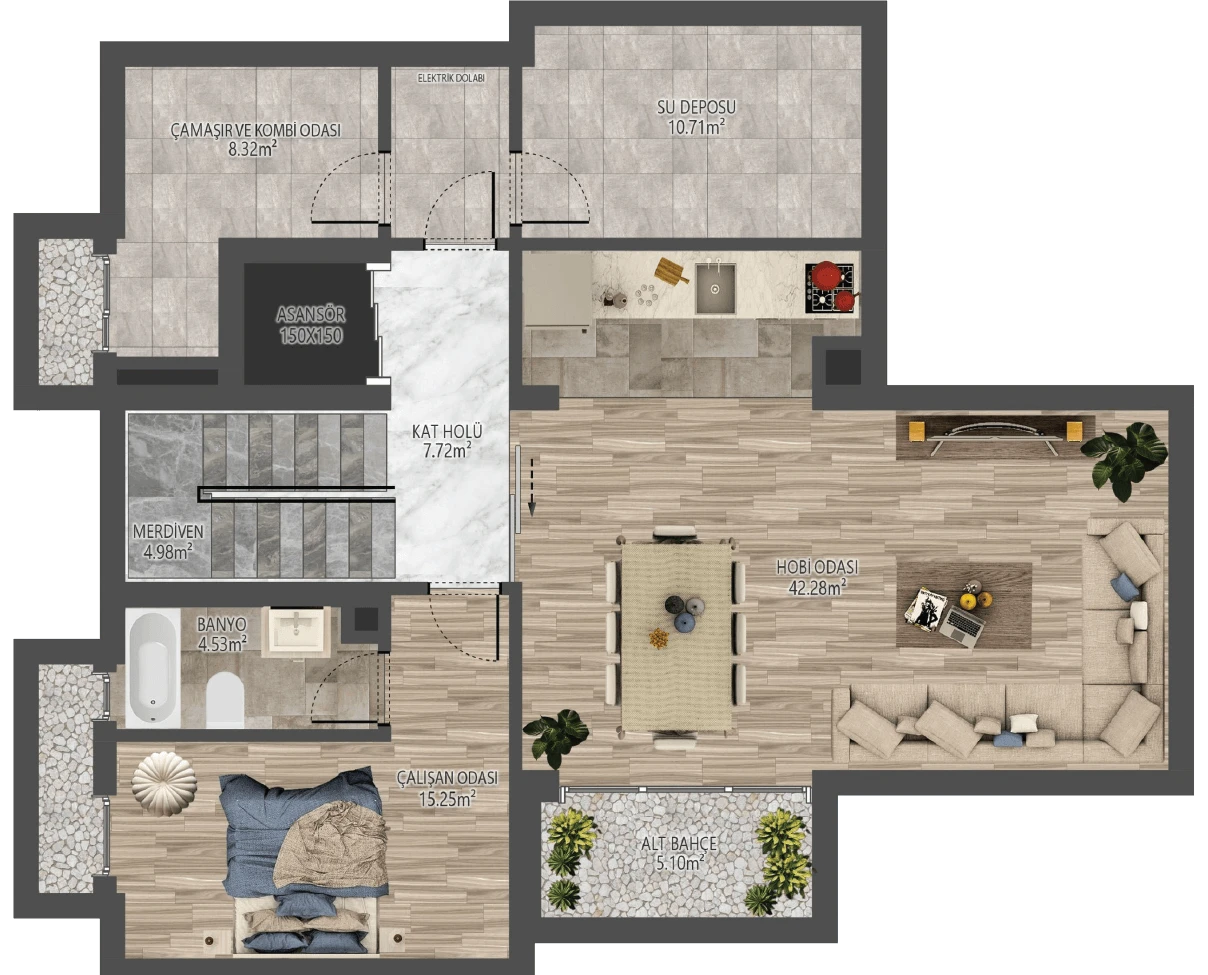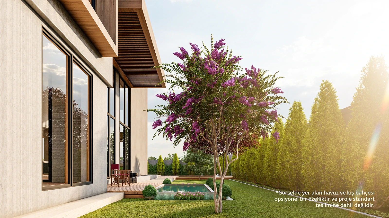 *Görselde yer alan havuz, opsiyonel bir özelliktir ve proje standart teslimine dahil değildir.