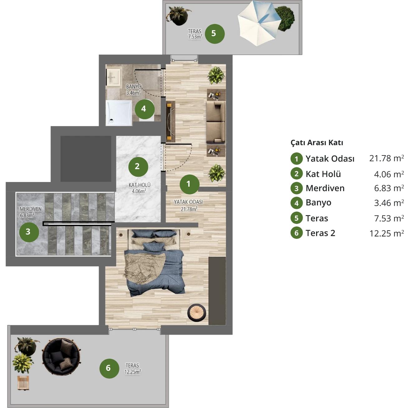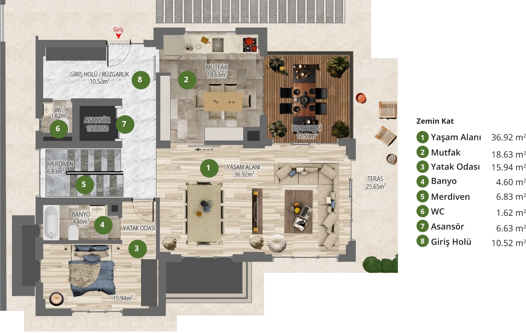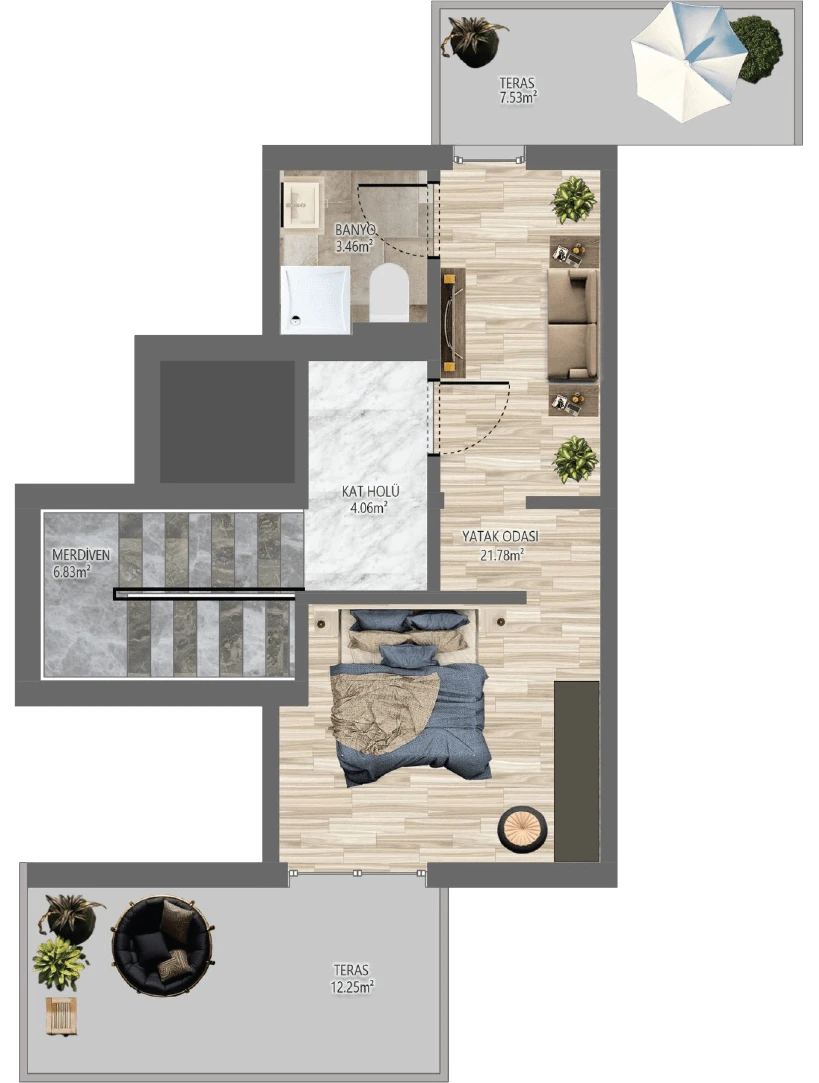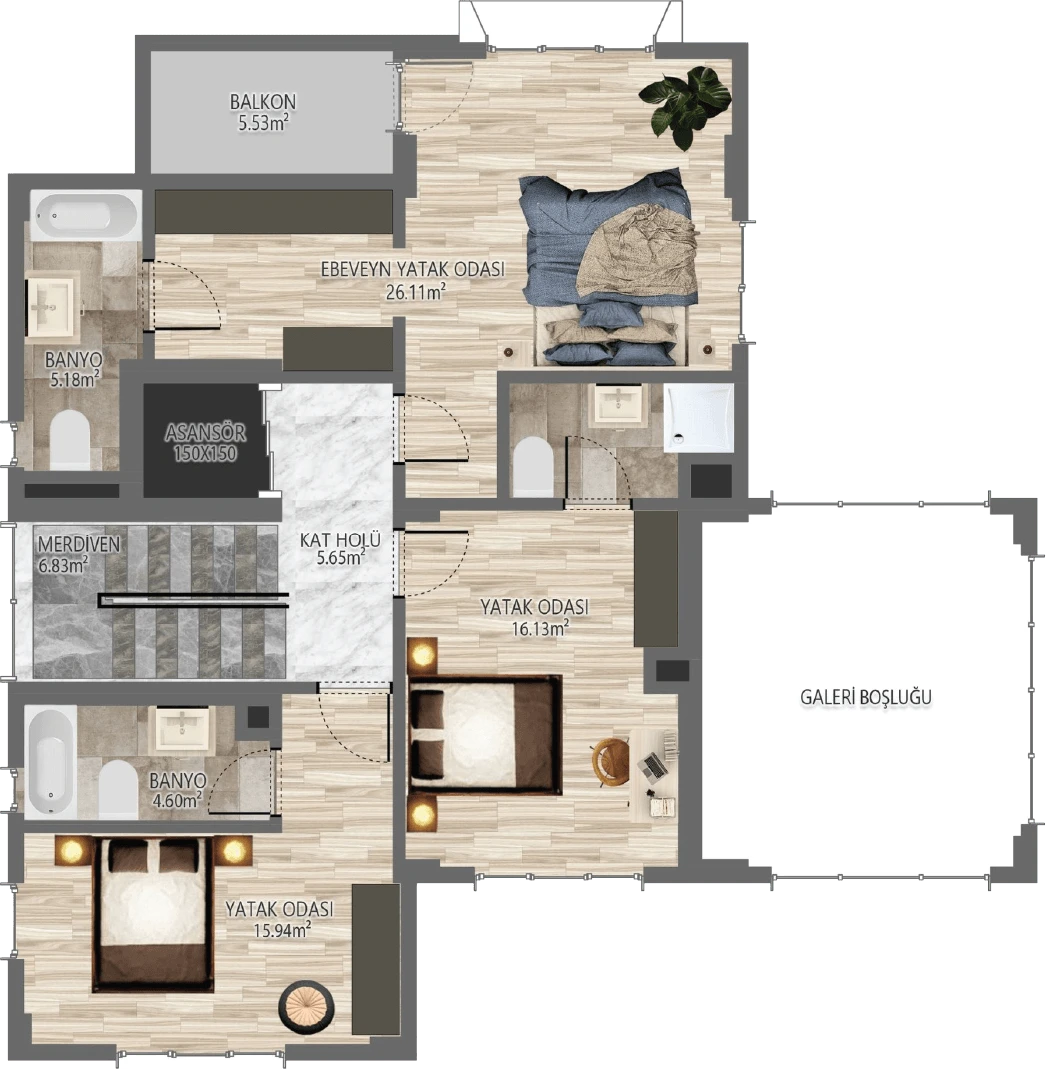 *Görselde yer alan havuz, opsiyonel bir özelliktir ve proje standart teslimine dahil değildir.